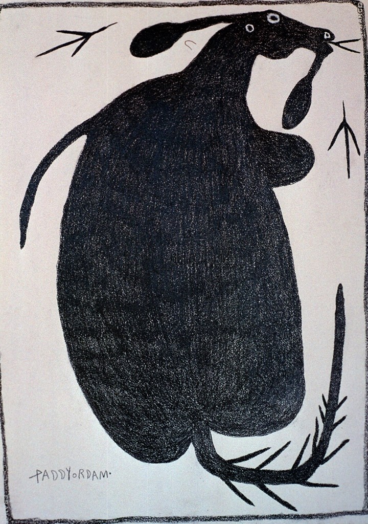 Karlnglangdeh, the skin belong to him when he walk, he rattle everything when he walk. Wind, rain that’s his power. Storm. We can sing him to stop but not to come kill with us.