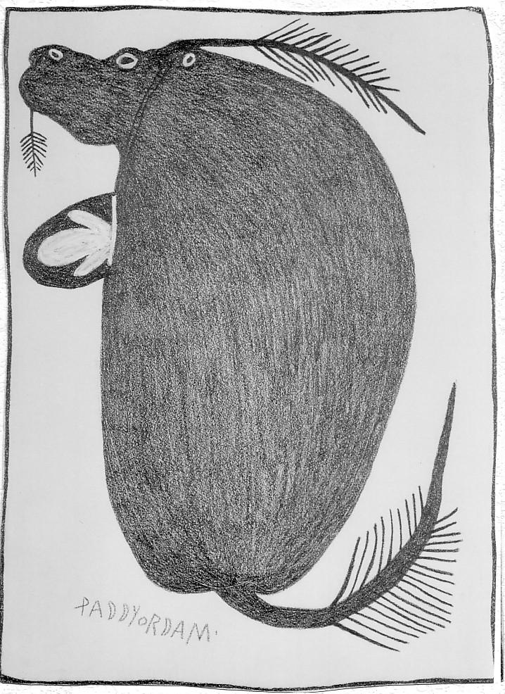 Marndarrk we call him, on his back. Him can look up, backwards way, to look out of the water. This one my wife know him. Some of these on rock painting too.