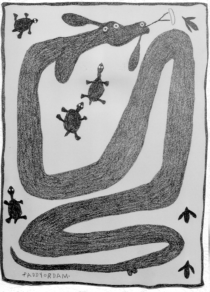 This is our dragon, we know him. He looks after all the Yellow Belly Snake, File Snake, Tortoise, other dragons, Water Goanna, everything. He got the power. If the dragon die then there is no water. He is the one that holds all the water inside him.