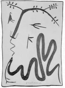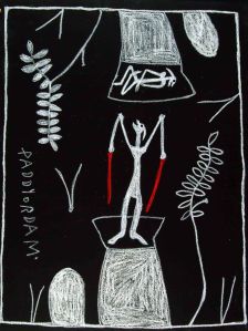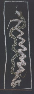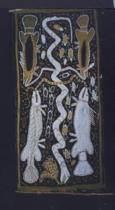 During the 1990’s Mimi Aboriginal Arts commissioned Paddy to create a series of ochres on bark paintings to showcase his Rembarrnga spiritual, physical and mythological worlds. Thirty-eight.